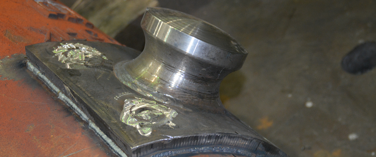 Nach dem Schleifen wird Die Kokille zum Schweißarbeitsplatz gebracht, wo die gebrochenen Teile, Lunkern und andere Fehler heraus geschweißt werden. Nach dem Schweißen wird die Kokille mit einer Handschleifmaschine oder, bei kleineren Schäden, mit einem Winkelschleifer geschliffen.